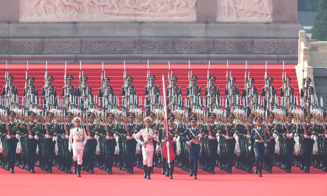 随着中共中央总书记、国家主席、中央军委主席习近平发表重要讲话,会议室响起热烈掌声。受阅部队军容严整、意气风发,铁甲战车整齐列阵、威风凛凛。护旗方队迈着铿锵步伐护送国旗入场,威武的受阅部队列阵通过天安门、先进的武器装备依次亮相、8万余和平鸽展翅高飞、8万只气球腾空而起,一幕幕震撼人心的画面,让在场观看直播的同事们爆发出阵阵赞叹,爱国情怀与民族自豪感油然而生,深切感受到国家日益强大,为祖国国防力量的现代化发展感到无比自豪。
